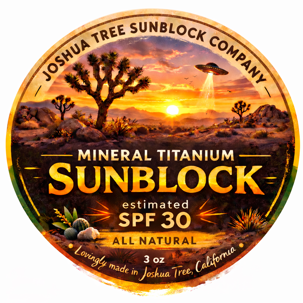 Joshua Tree Mineral Sun Balm was created in the Joshua Tree Ca desert where the sun is relentless and skin takes a beating if you spend real time outdoors. Dry air and constant UV exposure can quickly stress your skin, especially tattooed skin. This balm was built to support skin exposed to the sun while nourishing it with simple organic ingredients.